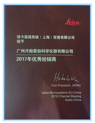 榮獲徠卡顯微系統(tǒng)(上海)貿(mào)易有限公司“2017年優(yōu)秀經(jīng)銷商獎(jiǎng)”